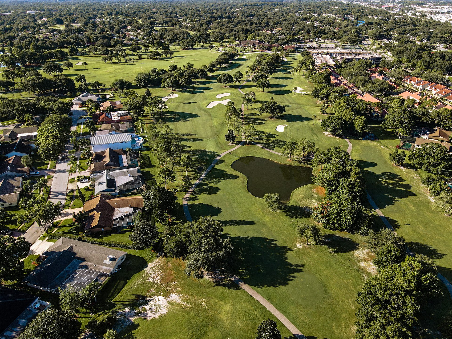 Great Par 3 - Signature Hole for the Bayhead Course. Half island green so don't miss left. Right is safe