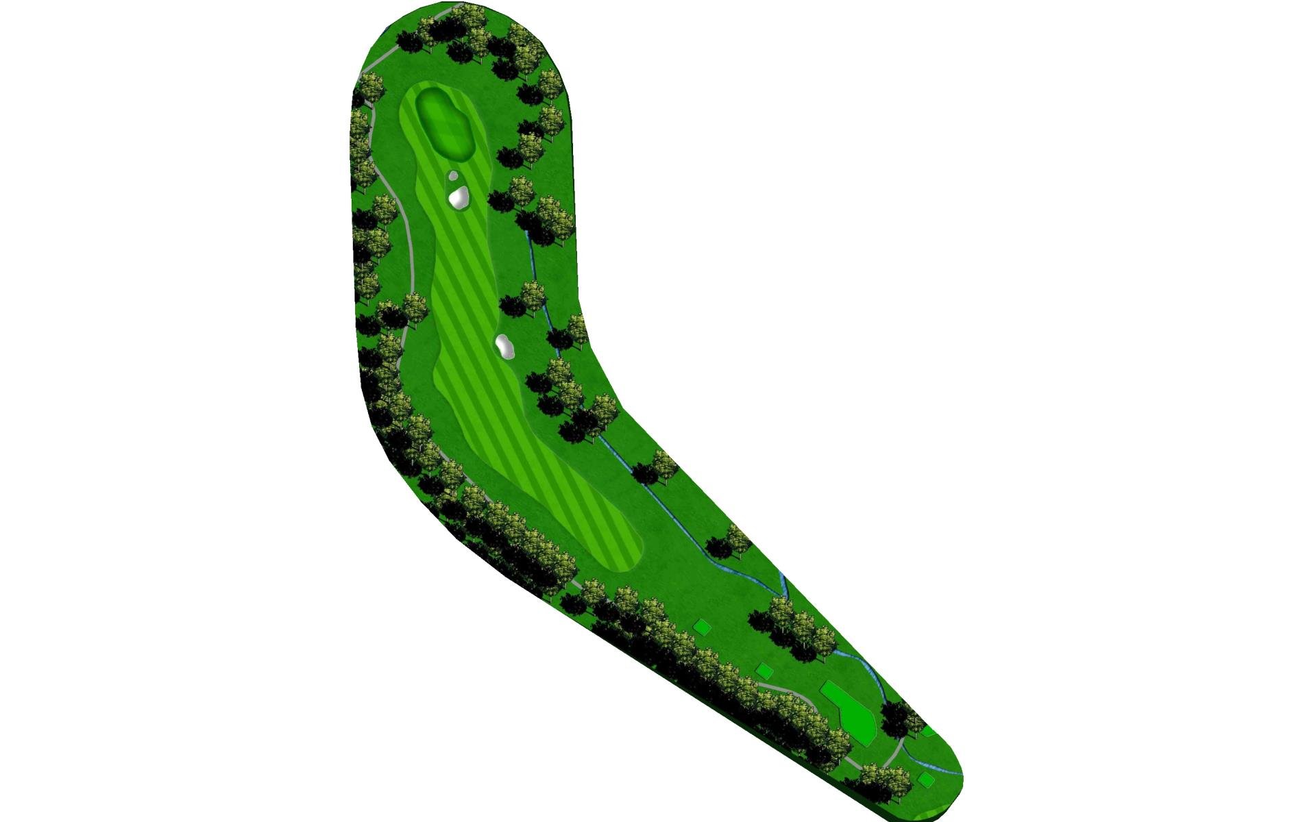 One of the most difficult par 4s on the course; your tee shot is critical to making par. A slight draw with a driver or well placed layup will avoid the dangers of the tree lined fairway.