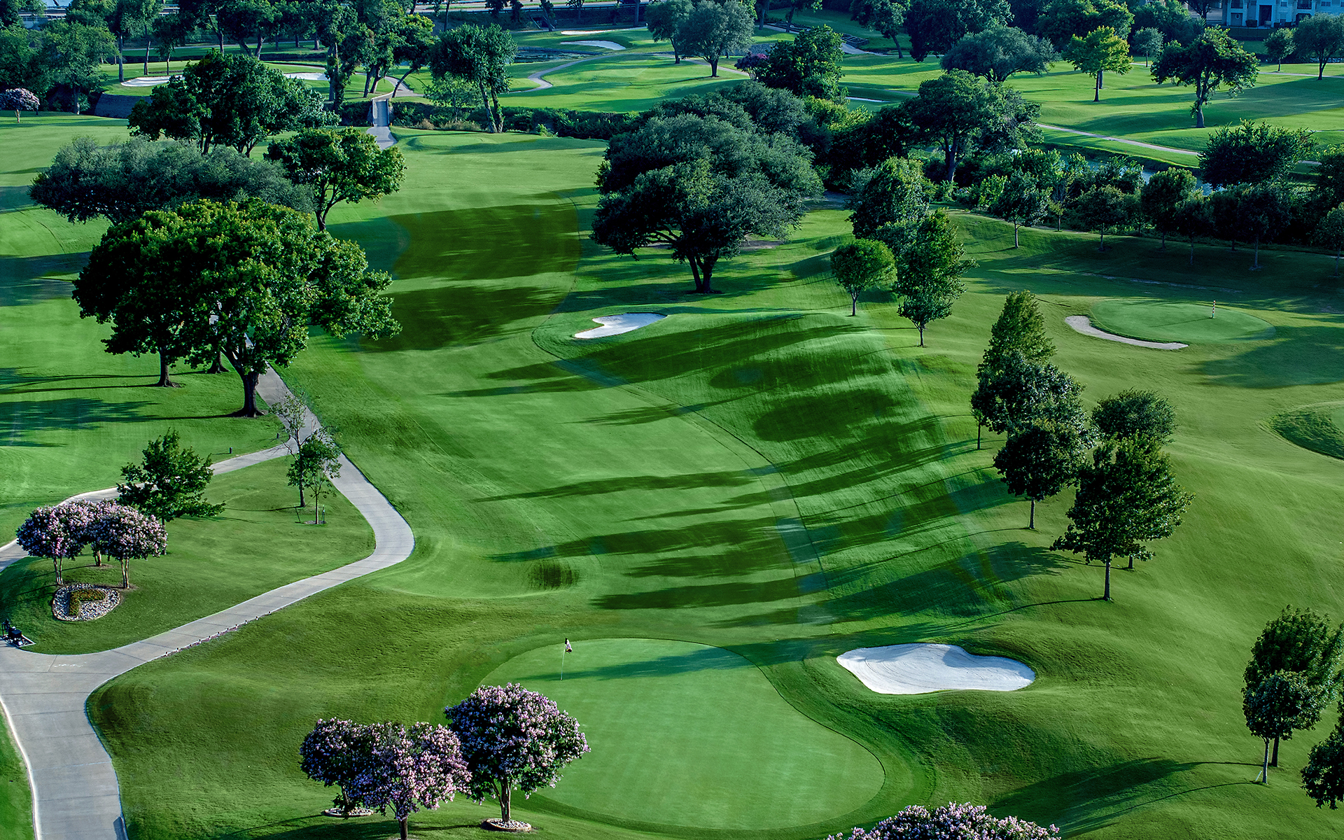 Dave Bennett of Austin designed the 18-hole championship Hills Course. This course offers members one of the most exciting golfing challenges today. The course encompasses rolling hills, crystal waterscapes, and a profusion of natural foliage.